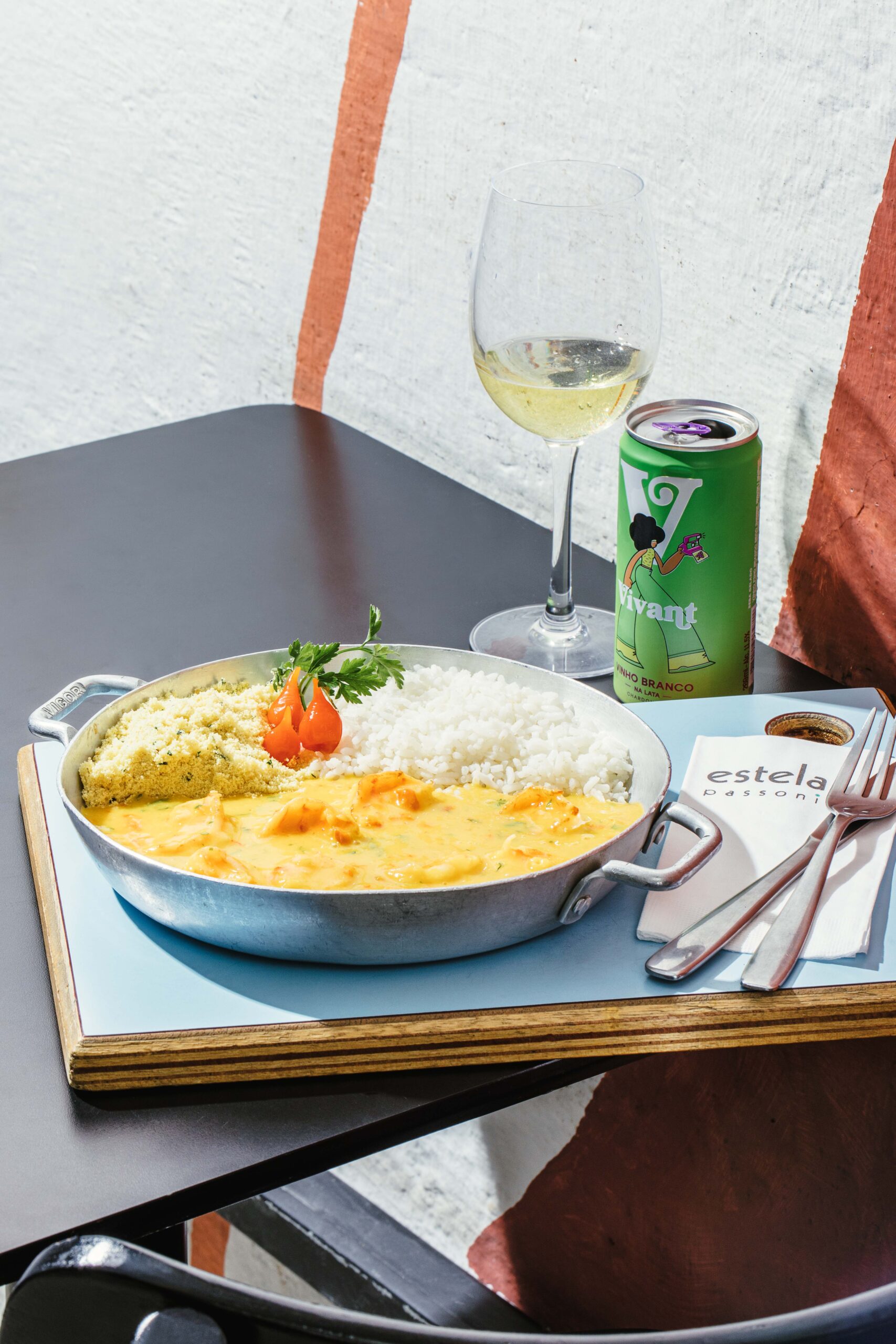 bobó de camarão sustentável, sem hormônio, com arroz agulhinha e farofa