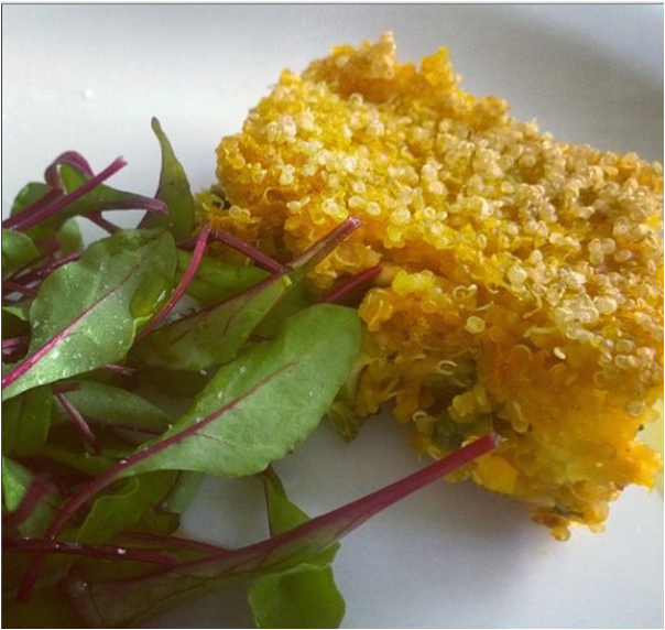 ingredientes: quinoa, água, abóbora japonesa, azeite extravirgem, sal marinho, noz-moscada, brócolis, tofu, shimeji, cebolinha,manjericão, sal marinho, pimenta rosa, azeite