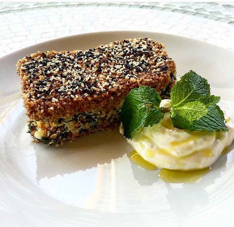ingredientes: trigo para quibe, água, nozes, sal marinho, cebolinha, azeite de oliva, alho poró em rodelas, espinafre, couve-flor, cenoura, cebolinha, manjericão, ricota, pimenta rosa, limão siciliano, gergelim branco, gergelim preto